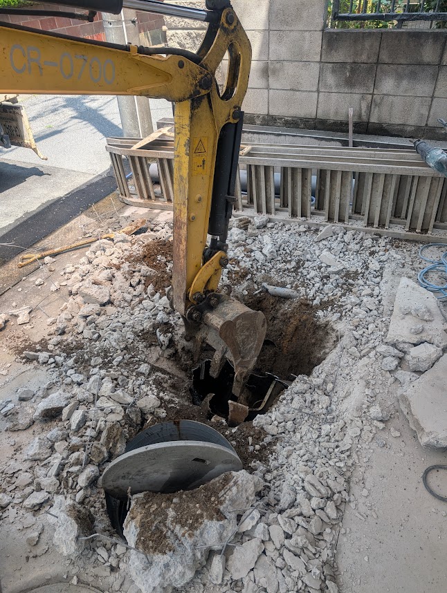 まず浄化槽の周りにあるコンクリートをハツリ解体します。